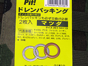 ![]() バイクや自動車用のドレンパッキンを利用してドレスアップを試みた。サイズは外径20mm×内径14mm×厚み1.5mmのマツダ車用がアルミのシルバー2枚入りで252円。外車用の同サイズで銅製のものが1枚63円と非常にリーズナブルな価格。オートバックスなどで取り扱っている。 |