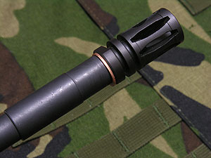 ![]() 早速装着。サイズはピッタリ。実物も発射ガスがこの部分から漏れないように柔らかい金属でパッキングしているハズ。角度調整も偶然ピッタリだったが、G&Pの薄いワッシャーで調節するか、ちょっときつく締め込めばパッキン自体が柔らかいので、角度を多少は調整できる。 |
