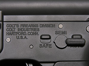 ![]() フルオートシアピンとハンマーピンはG&Gと同様に別パーツが埋め込まれていてリアル。アッパーレシーバーに「C AF」という刻印アリ。 |