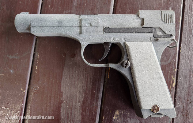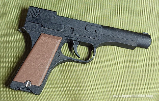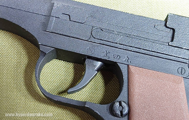 当初の予定は「握ってしまえば九四式拳銃に見える」というプロップガン(映画などで使う撮影用の銃)的な発想だったが、