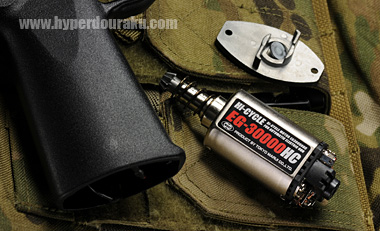 このモーターは東京マルイから別売オプションとして発売され、M16/M4シリーズ、クルツ系を除くMP5シリーズ、G3シリーズ、P90、次世代M4シリーズに対応する交換用モーターとして使用可能だ。