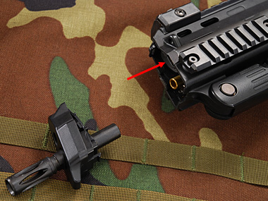 マズルキャップとサイレンサーアダプターが付属する。フラッシュハイダーを取り外し、サイレンサーアダプターを取り付ける。アダプターはM14逆ネジ仕様になっているので市販のサイレンサーが取り付け可能だ。