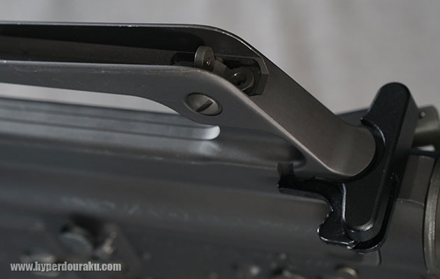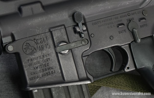 COLT M603後期型レシーバーをリアルに再現。L型ボルトフォアードアシストノブ、初期型ケースディフレクターのほか、細部もこだわりを感じる造りだ。