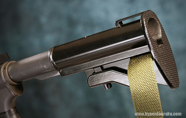 ストックはアルミ製の2ポジションで、当時の「酢酸ビニールコーティング」を再現したゆず肌塗装となっている。
