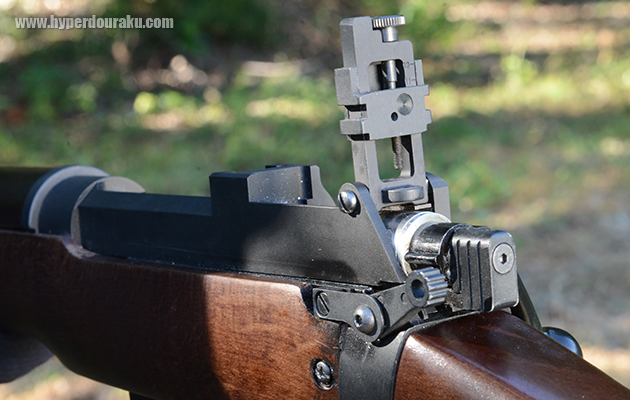 さらにリアサイトを立てると遠距離を狙うためのエレベーションサイトになる。このメカニカルなデザインがたまらない。