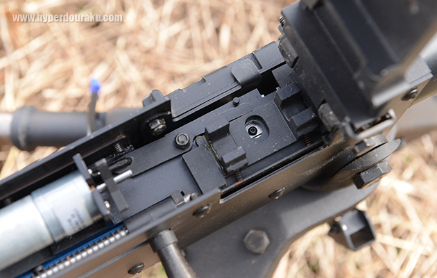 ただし電動ガンのメカ、精度、連射サイクルは秒間13発強で、至って普通です。リポバッテリーのわりにはトリガーレスポンスの遅さがちょっと気になりましたが、オーソドックスなメカのため、信頼性も高いと思われます。個人的にはもうちょっとハイサイクルの方が機関銃らしくていいかなと感じました。