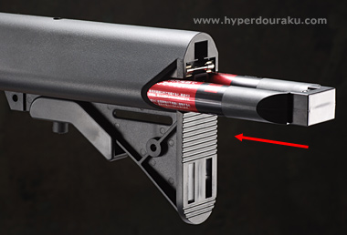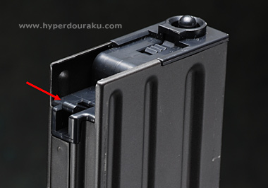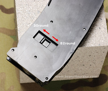 通常はスイッチは82連発の位置にあるが、前方にスライドさせると30連発のリアルカウントマガジンにできる。