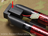 本体に付属するSOPMODバッテリー専用のコネクタ。下の写真のように上からスライドさせてはめ込み、ニッケル水素充電器に接続する。もちろん従来のみにコネクタなので、手持ちのニッケル水素充電器にも接続可能。