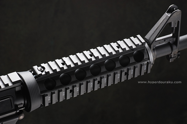 SOPMODとは、Special Operations Peculiar Modification to the M4 Carbineの頭文字をとったもの。特殊作戦特有改良といった意味だが、つまりは特殊部隊の任務用にM4カービンをカスタムするプロジェクトの名称、あるいはアクセサリーキットの総称でもあり、その中核をなすのが、ナイツ社のレールハンドガードシステムというわけだ。