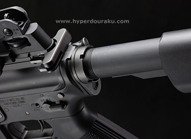 従来はプラ製だったロアレシーバーエンドも、リコイルバッファチューブ根元のリングも別パーツで金属製となっている。