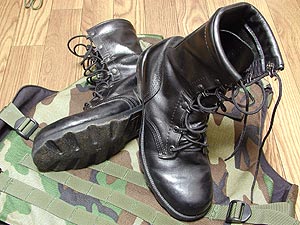 ![]() ブーツは米国ALTAMA社製コンバットスピードレースブーツ。ラグトレッドソールの泥ハケは抜群。ただし、本革なので手入れは欠かせない。クッションインナーソールを入れて使用。ファントム渋谷/\16,000。 |