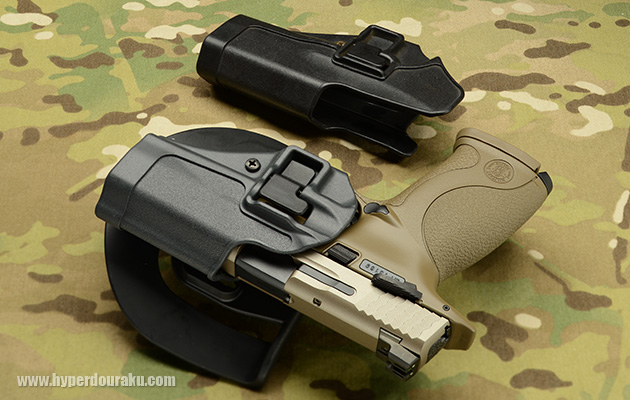 フロントサイトが高いので少し心配だったが、BLACHAWK!のSERPA LEVEL 2 SPORTSTERホルスターに問題なく入った。またBLACKHAWK!のGLOCK 20/21用ホルスターにも収まる。