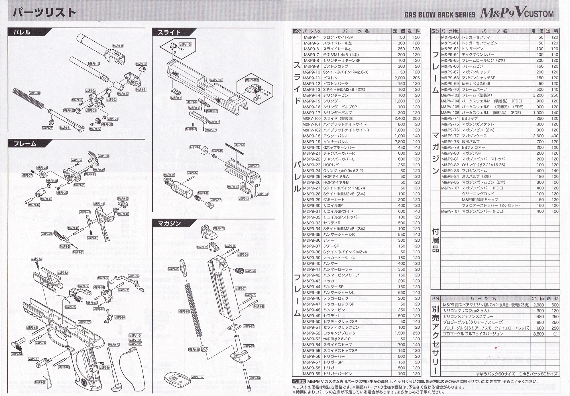 | 東京マルイ ガスガン S&W M&P9 Vカスタム スペック & 弾速データ | |||||||||||||||||||||