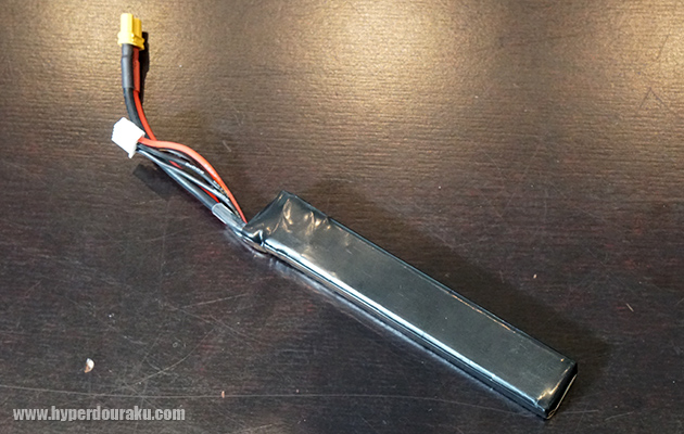 バッテリーは11.1v、700mAh、45Cが推奨される。コネクタ形状は大電流にも対応できるXT30コネクタとなる。
