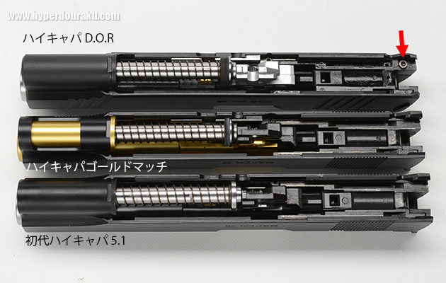 アウターバレル形状やチャンバーカバー、リコイルスプリングガイドはD.O.Rは従来とは異なる。リコイルプラグは5.1と同じ、リコイルスプリングは共通に見える。