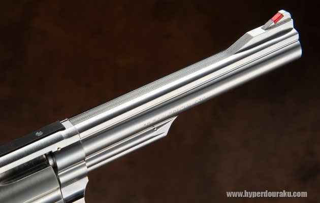 カートリッジこそ装填することはできないが、装弾数や初速安定性に優れ、なんといってもその滑らかなトリガー、ハンマーの作動はグリップ内にガスタンクのあるカート式リボルバーでは味わえないものがある。