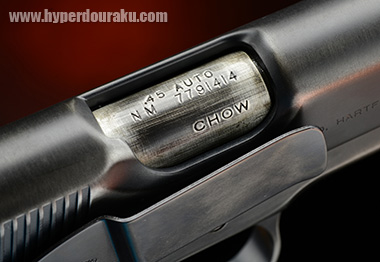 コルトガバメントのシリーズ70をベースとしたスライドとフレームの角は丸く削られ独特の存在感を放っている。このメルトダウンという加工法は現代のタクティカルガンにも採用されるほど。またスライド右側に設けられた携帯用のベルトクリップも特徴的だ。