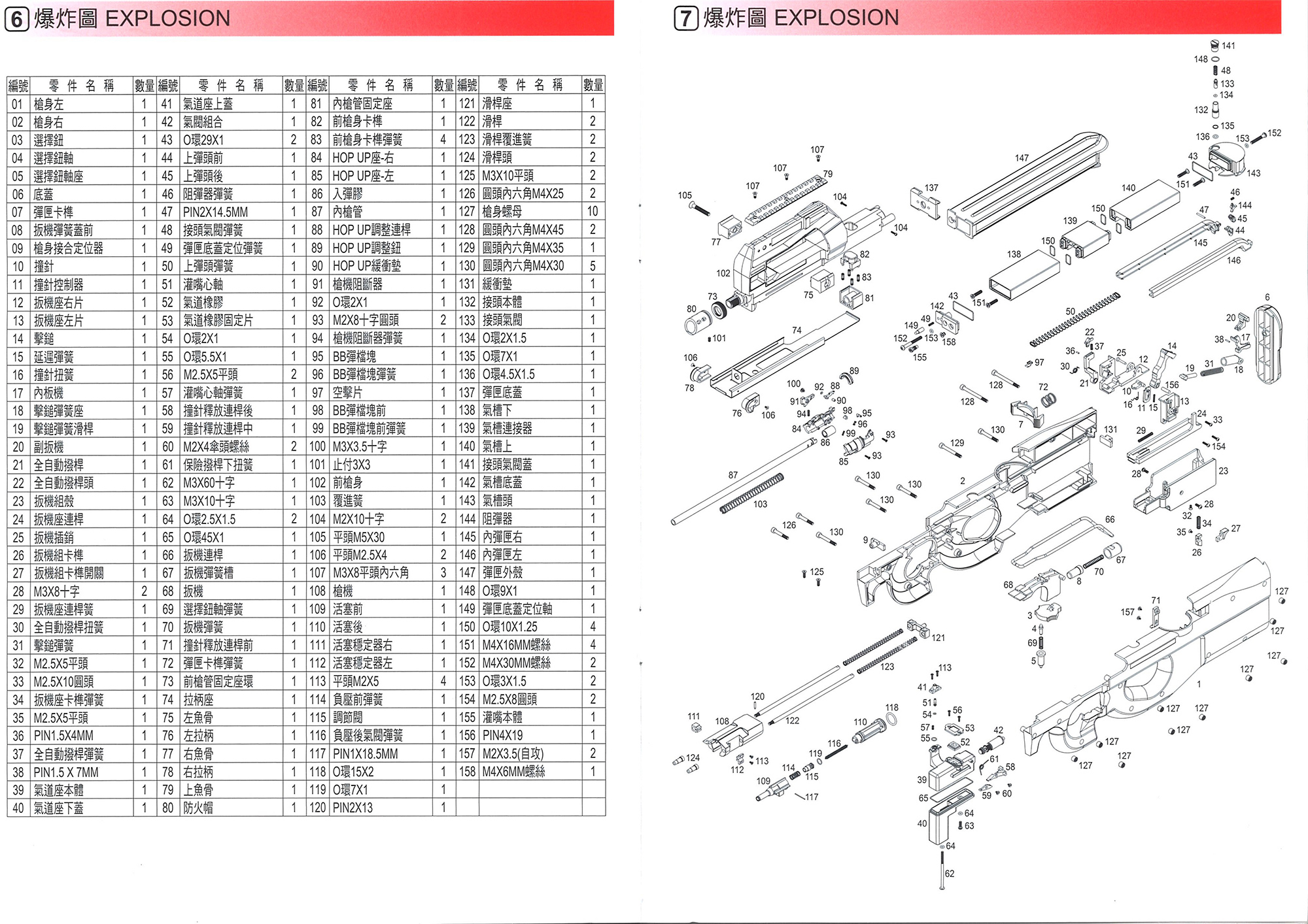 工具なしで、簡単にここまで分解できます。手順&構成はほぼ実銃と同様です。このリアルなメカがガスブローバックのよいところです。P90の実銃は分解したことはないのですが...。