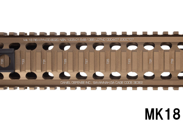 MK18は、電動ガスブロ問わず様々なメーカーから数多くリリースされている人気機種だが、今回はMod.1、Mod.0といったアメリカ特殊部隊向けのモデルではなく、Daniel Defense社製品としてのMK18がモデルアップされている。