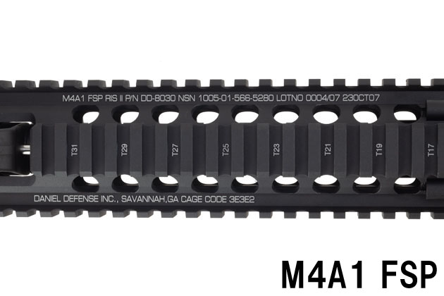 M4A1FSPは、かつてDaniel Defense社のアドバイザーを努めていた元デルタ隊員、ラリー・ビッカース氏による、「厳しい実戦の場でもっとも信頼出来るサイトはバレルに固定されたアイアンサイトである」という助言によって造られたもので、実際の使用例がミリフォトでも確認出来るバリアントのひとつだ。