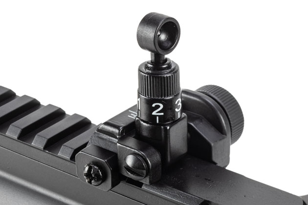 フロントサイト同様、リアサイトもKACタイプのフリップアップサイトを装備しているが、実物同様に上下左右の調整が可能で、クリックストップも設けられた本格的なレプリカとなっている。