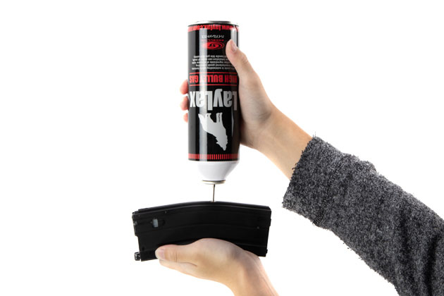 上の画像で見られる通り、このマガジンは注入バルブが背面中央付近に設けられているため、画像のようにマガジンを横向きに立ててガスを注入する形となる。