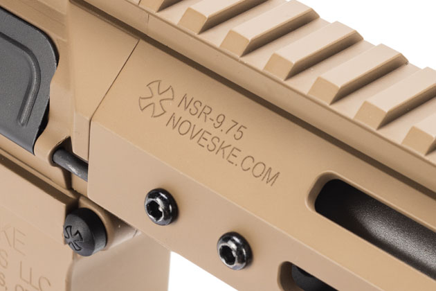 ハンドガード付け根付近の両側には、正規ライセンス取得品の証であるNoveskeの刻印が深く刻まれている。その基部からのラインがスムーズに繋がるアッパーレシーバーは、Noveske 10.5 SHORTY UPPERとしてデザインされたもので、その一体感の高さが実に魅力的だ。