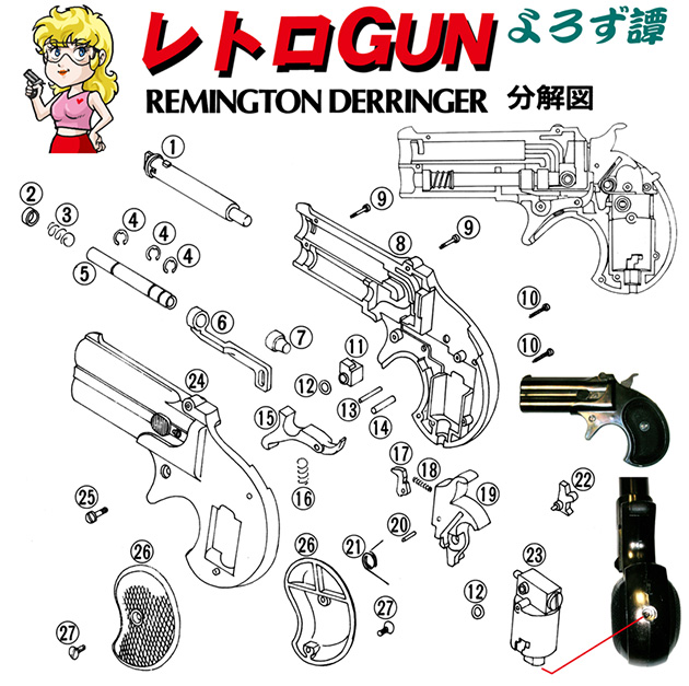 レトロGUN レプリカ レミントン デリンジャー 2014.03.19 レトロGUN 昔懐かしいレトロなトイガンをイラストと写真で紹介するレトロGUN よろず譚。 今回はレプリカ レミントン デリンジャーです。 イラスト&解説: ユメピョン 関連リンク2016年8月11日 レトロGUN ヨネザワ ブローニングベビー2016年7月28日 レトロGUN タカトク SSスーパー72016年7月7日 レトロGUN タニオ・コバ H&K VP-70M2016年6月30日 レトロGUN マルコシ ワルサーP-5