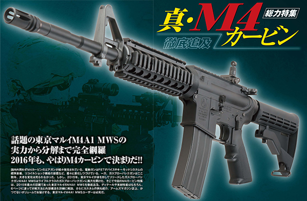 国内外問わずM4カービンのエアガンが続々発売されている。電動ガンはFETデバイスやキーモッドシステムの標準装備、リコイルショック機能の搭載など、着々と進化しつづけている。一方、ガスブローバックガンはここ数年、大きな変化は見られなかった。しかし、2015年、東京マルイが満を持してリリースしたガスブローバックガンM4A1 MWSはライフルクラスのガスブローバックガンに風穴を開けた。そこで今回のM4カービン特集は、2015年最大の話題であった東京マルイのM4A1 MWSを徹底追及。ディテールや実射性能はもちろん、6ページに渡って分解方法と内部構造を詳細に解説。さらにカスタム作例も紹介。アームズマガジン誌上、かつてないボリュームでお届けする。東京マルイM4A1 MWSユーザーは必見だ。