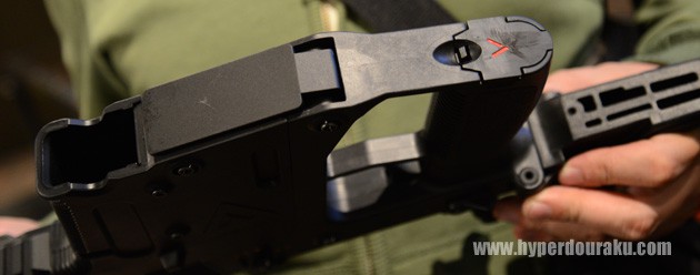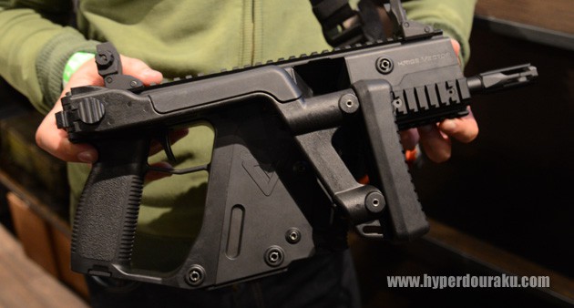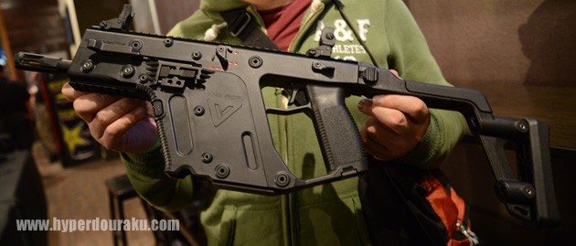外観はGen2のクリスベクターをモデルアップ。質感も実銃と違和感なく出来上がっているように見えました。ただし、ATFとの絡みで実銃とはパーツの互換性が無いよう微妙に変更しているそうです。