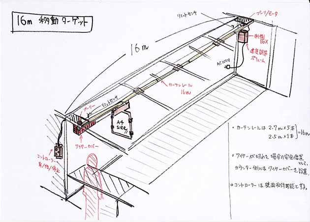 【LED発光スチールターゲット】:15mの壁には、JWCSターゲット