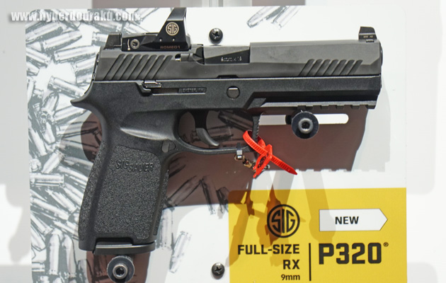 SIGはこれといって目新しいものがありませんでしたが、P320 FULL SIZE RX 9mmにROMEO1ミニドットサイトが搭載されたものが新商品として展示されていました。