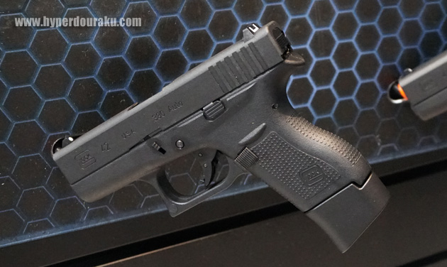サイバーガンはグロックの制式ライセンスも取得し、公認ロゴの入ったガスブロを発売。17、19に加え、42も展示。
