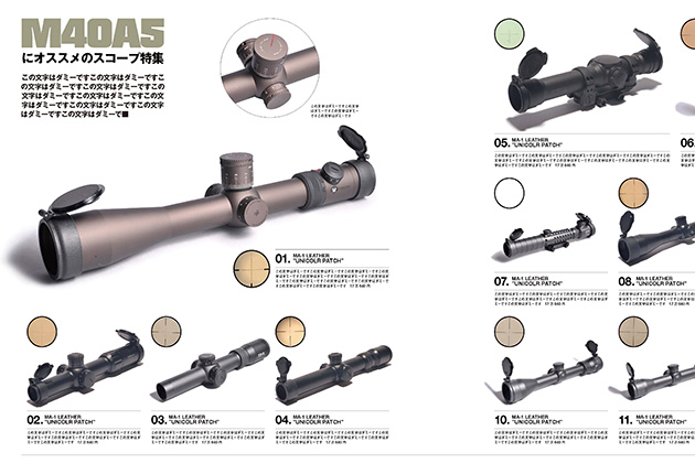 東京マルイのM40A5特集。もうフィールドでもちらほら見かけますね。新発売のM40A5に合わせるスコープ含め、外装カスタム提案です。なんと、RECOILマガジンとの業務提携の実銃リポートも、M40A1とM40A5。