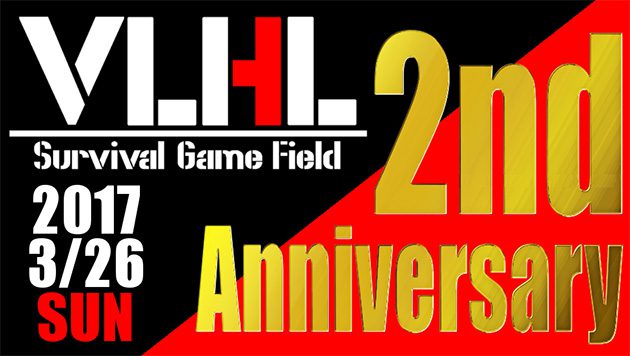 2017年3月15日でヴァルハラ サバイバルゲームフィールド(VLHL)が2周年を迎えることを記念して、2017年3月26日(日)“VLHL 2ndアニバーサリー”が開催される。