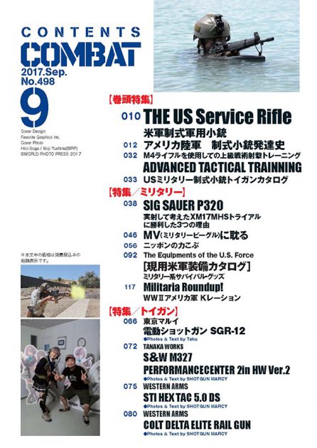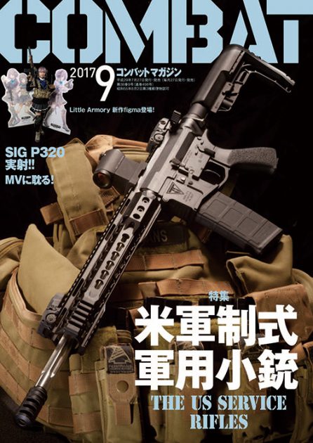 今月号の表紙は、特集内の「M4上級戦術射撃トレーニング」で使用されるJT-15ライフル。