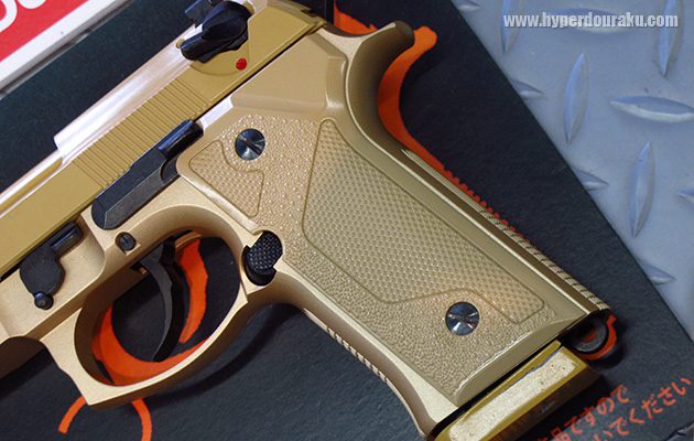 実銃では独特のスライド固定機構をGBB用にトリガーガードロックとし、サバゲー中などで不用意にトリガーガードが開かないようにアレンジしています。