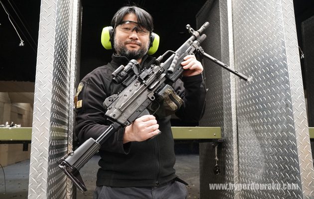 まずはこのM249ミニミのパラモデルを撃ちます。ベルトリンクで40発、レートリデュースが効いていて回転数はかなり遅かったです。