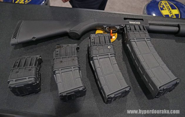 左から5、10、15、20発のショットシェルを装弾できるボックスマガジン。