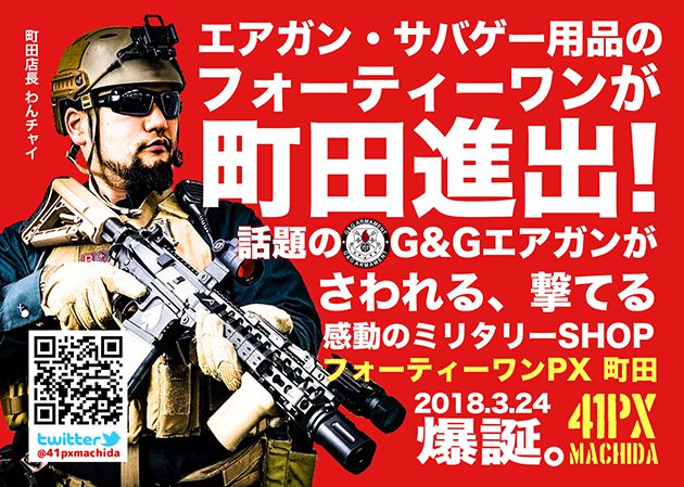 いまや秋葉原名物、G&Gエアガンが「さわれる、撃てる、感動できる」サバゲーショップ「41PX」が2018年3月24日に2号店を出店します。! その名も「41PX 町田」。