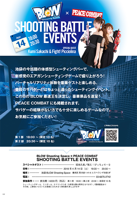 最後に告知です。坂地久美さんと戦え! ぴっちょりーなさんを招いて、池袋のシューティングバーでまったりシューティングバトルのイベントやります! 最近流行のVR系のゲームです。これがまた面白い!