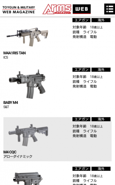 現在国内で流通しているエアガン・モデルガンをデータベース化! さまざまな項目で検索できる、便利な検索機能付きです