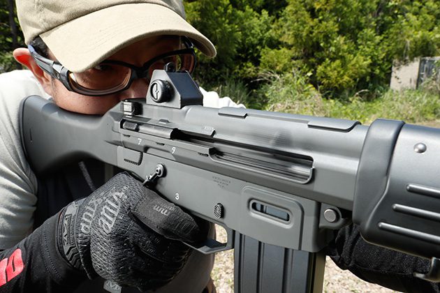 当初より発売は遅れましたが、実際に完成した製品の出来は素晴らしく、特に3発制限点射がバシッと決まり、ガスブロのM4A1 MWSと同様の命中精度を実現し、実銃に近い内部構造を再現できたことに驚きを隠せませんでした。