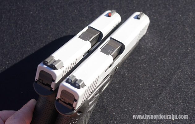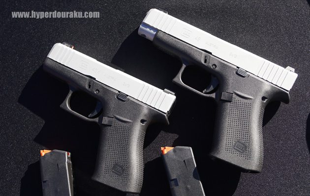 43Xと48はスライド長とバレル長と、サイトが異なるくらいであとは同じです。口径は9mmの装弾数10発。