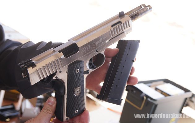 こちらも撃ってみたかった一丁で、Arsenal Firearmsの2011 Dueller、ダブルバレルの1911クローンです。