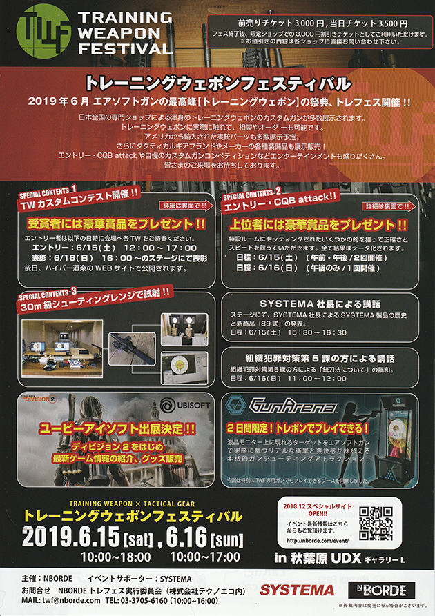 2019年6月15、16日に東京秋葉原でトレーニングウエポンフェスティバル、通称「トレフェス」が開催されます。