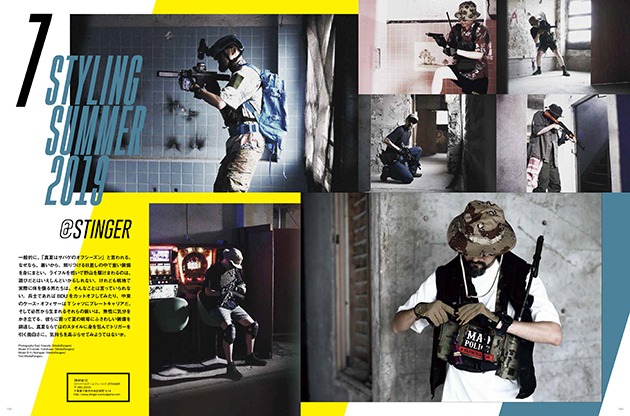 続いて2特ですが、暑い夏にぴったりの企画。題して、暑い夏をセンスよく乗り切る夏装備大特集。基本的には最新のチェストリグをベースに、タクティカルT-シャツやタクティカルアロハやポロ。ショートパンツやサープラスの薄手アパレルなどをセンスよく組み合わせたサバゲーコーデファッションページです。色々な要素を取り込みつつ、あくまでもしっかりミリタリーに組んでみました。是非夏コーデのご参考にしてもらえたらと思います。