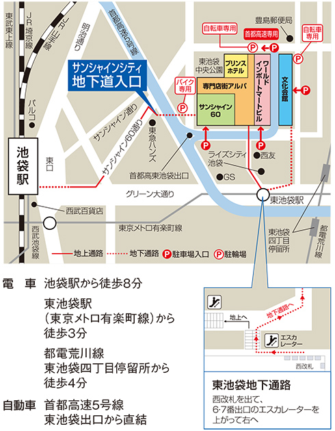 ●アクセス :( 電車)JR / 池袋駅から徒歩8分、東京メトロ有楽町線/東池袋駅から徒歩3分、都電荒川戦/東池袋四丁目停留所から徒歩4分
