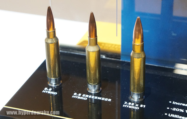 弾といえばSIG SAUERの弾薬にも注目です。真ちゅうとステンレススチールのハイブリッドケース弾を展示していました。