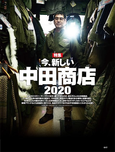 老舗・中田商店だが、軍放出品だけでなく常に新たなブランドを発掘し続けている。そんな、進化し続け、また人気ブランドの発掘なども積極的に取り組んでいる中田商店のこれからと目利きの真髄をインタビュー。そして中田商店が取り扱う各ブランドの2020年おすすめカタログ!!